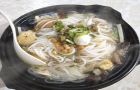 砂鍋米線是用米線制作的一道云南特色風(fēng)味美食,因其使用砂鍋來進(jìn)行煮制,所以得名砂鍋米線。米線在泡制過程中營養(yǎng)容易流失,因此米線需搭配各種蔬菜(香菇、木耳、筍片等)、肉、蛋和凋料來增加營養(yǎng),適當(dāng)?shù)恼{(diào)料同時又能讓米線美味。