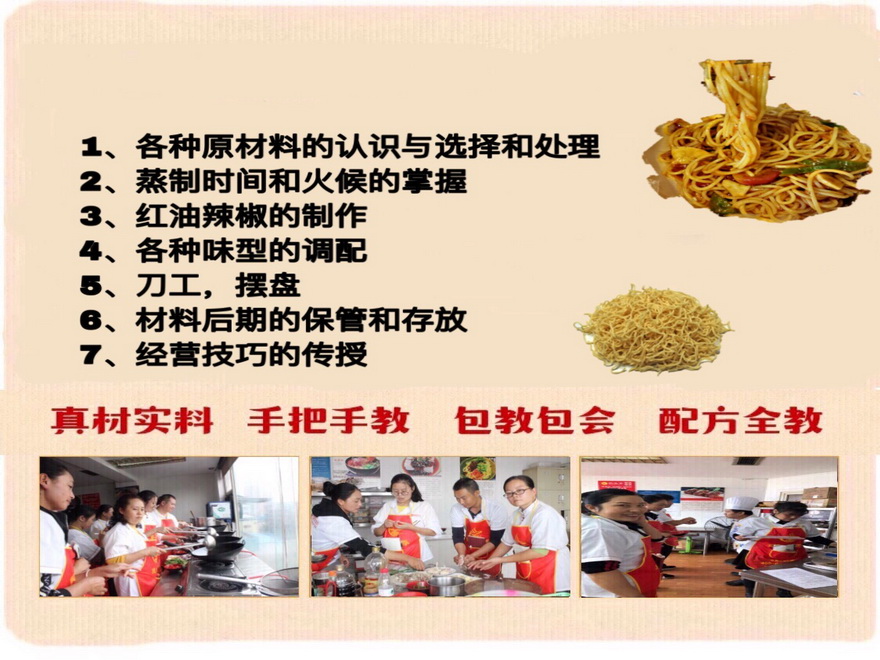 服務(wù)特色:①先試吃再學(xué)習(xí),不正宗退學(xué)費;②包吃包住,不收取材料費用; ③不限制時間,至到學(xué)會為止。