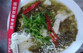 在冷冷的冬天吃上一碗酸菜魚米線是非常不錯的,味道湯酸鮮美,魚片鮮嫩爽滑,軟硬適中的米線,吃了還想吃哦。